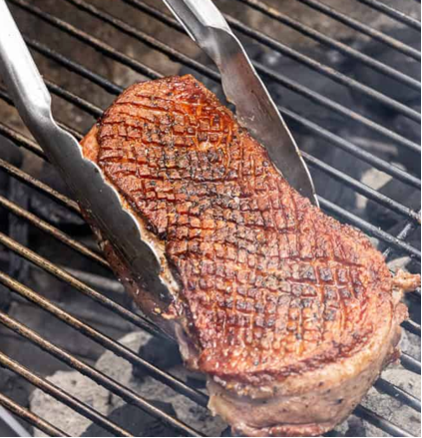 When you have a good bed of hot coals in your wood fired grill, set a cold cast iron skillet on the grill and put the duck breast in the skillet skin side down – do not preheat the skillet. The slow heat coming through the cast iron will gradually render out the duck fat. This is what you want.